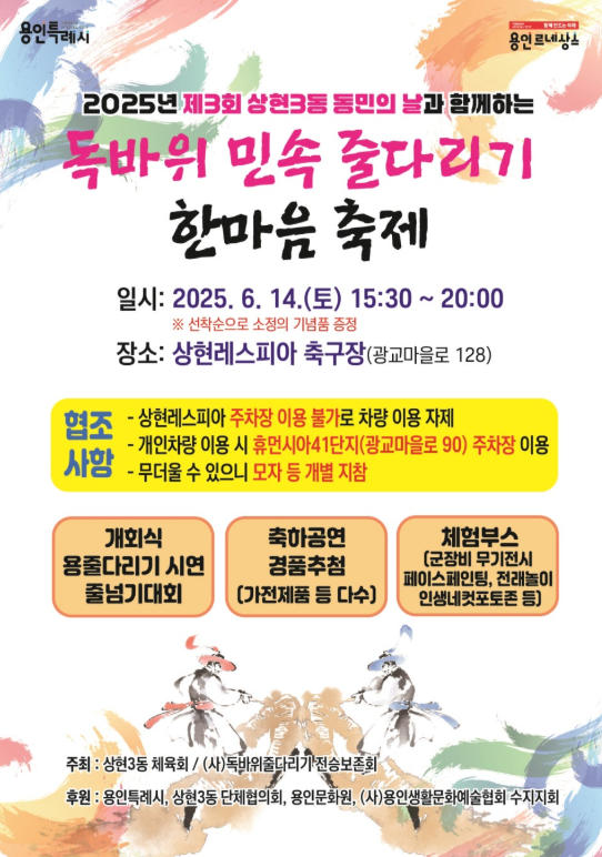 2025년에는 제3회 상현3동 동민의날과 함께 열리며, 다양한 부대 행사도 함께 즐기실 수 있습니다.