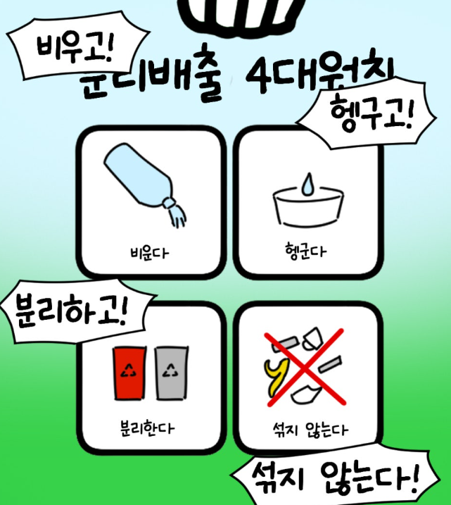 ※ 내용물을 완전히 비운 후 깨끗하게 헹궈, 재질별로 구분해 섞지 않고 배출하면 OK!